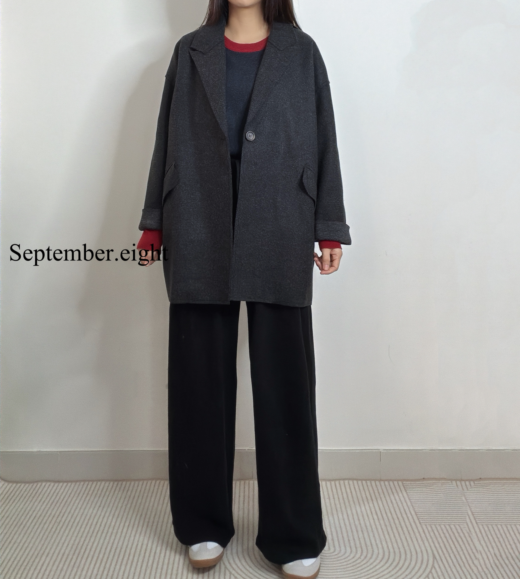 1月限時優惠/🌟優惠價$179 挺身絨布質地,厚薄適中 Over size,入面可以襯冷衫 氣質中長款,襯對boots仔着都得 尺寸: 胸 52寸/長30.5寸 預訂10-12天